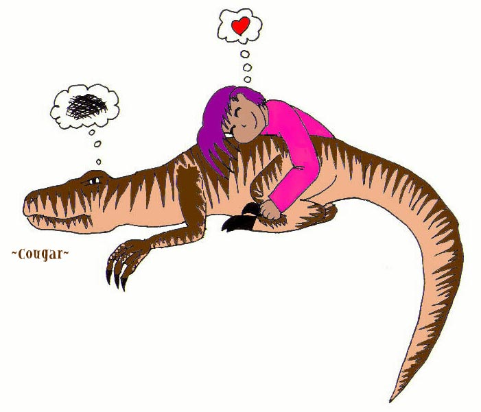 - Awww, Cougar's giving Dinobot a hug! Does he like that? Nope! ;) (And NO, my hair really isn't purple or styled like that...) (63k, 12-10-01)