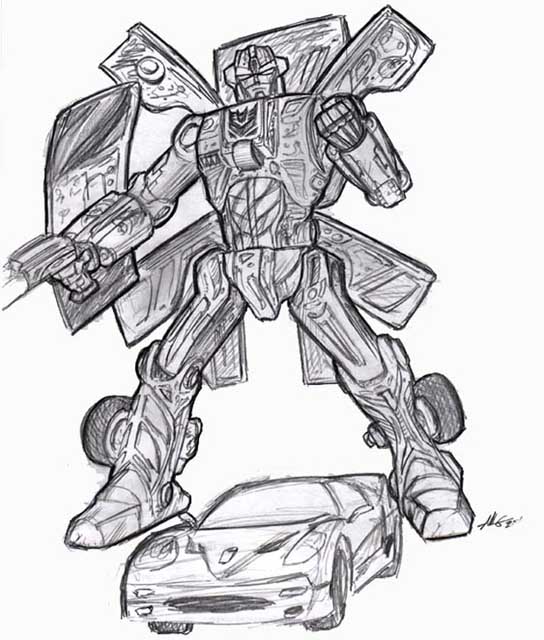 These next 3 illustrations are pencil roughs I created of my own TF characters. They are Decepticons. Their sub-group is the Roadwarriors.
