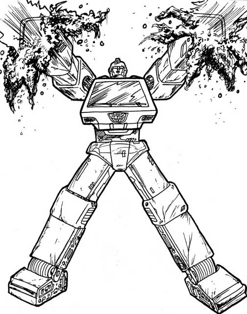 - "Cliffjumper" - Pen and Ink Illustration, drawn circa 6-02. I always loved this little guy. One of my favorite things about him was his spunk, especially with his 'glass gas' gun. I wanted to eluminate those favorable traits with this one. (71k, 7-31-04)