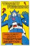• Page One (185k) - The comic strip side, depicting the creation and use of the Autobot Decoys.