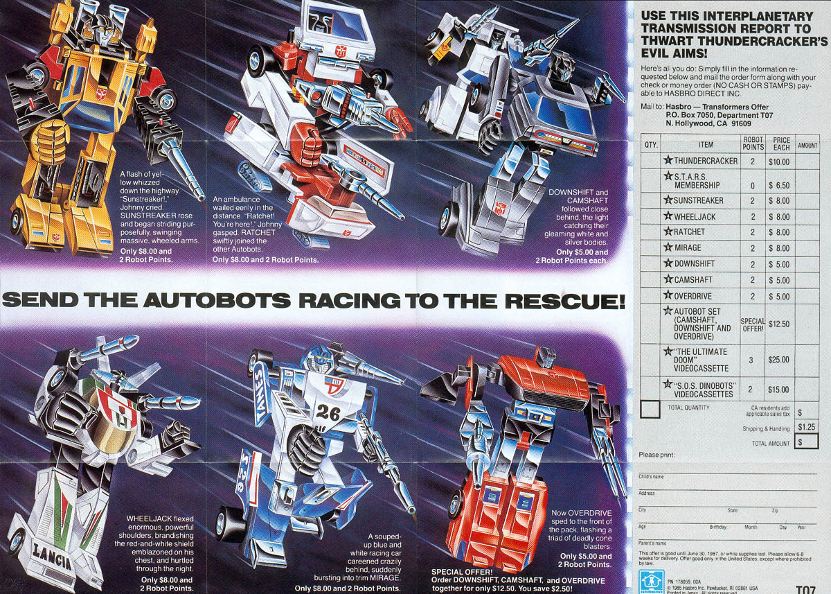 This page indexes scans I have made of TF related "paper" such as promotional flyers, catalog scans, and more. Individual instruction sheets for toys in my collection will be linked on the individual toy pages (i.e. Thundercracker's instructions will be linked on his toy page).