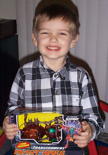 We took home the prize. Since I had that one too, my son would receive it into his own collection. He was just as exited about that as he was about OpOp, so no biggie. The rest of the errands were run, and the toy was opened upon arrival at home. Good thing Scavenger is one of the more simple megas to transform. He's pretty much got the knack already, except that some of the legs like to pop off, as does the shell on the abdomen.