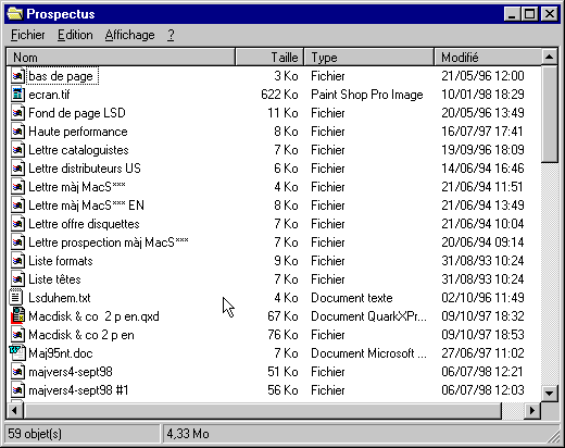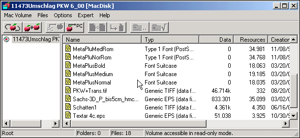 With MacDisk, the picture is quite different, isn't it? You know there are three Type 1 files, and three font suitcases (useless on the PC). You will be able to transfer them to the PC and convert them. The job is now easy!!