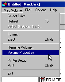 MacDisk offers therefore two new items in the 'Mac Volume' menu (Printer setting and Print).