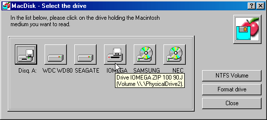 With this feature, MacDisk allows the user to download Macintosh applications on a PC and to install them thereafter on a Macintosh. See also our page on Installing Macintosh Applications.
