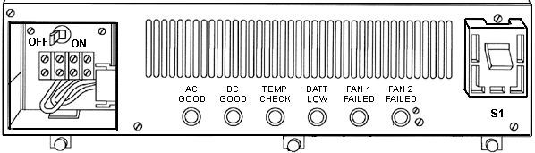 This internally mounted battery allows continuous operation through brief main power interruptions (nominal 1.5 seconds default). Also, if the interruption continues beyond this period, the battery maintains DC voltages to allow the system to perform an orderly shutdown.