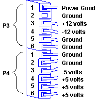 P3 / P4 Connector Pinout Model 30 and 30-286  (Pin 1 to rear of system)