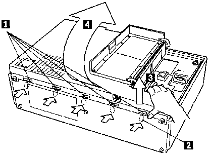 NOTE: There are two additional catches, one to each side of the carrying handle.When you lift up the rear cover, it pivots on them.