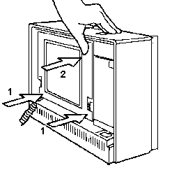 Remove the ports cover by pressing the hinge inwards (relative to the port cover).