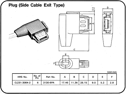 The P7x right angle connector is HRS # CL231-3004-2, part # 3130A-6PA Go to the Hirose Electric web page and look at their catalog HERE