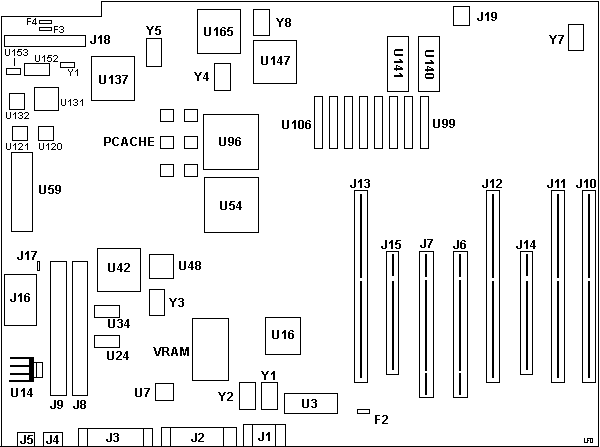 PHYSICAL CHECK:  Examine the modules in position "U24" and "U34" located near J8 and J9, the system board memory sockets.  If the part number on the module is FCT841, the system board should be replaced using this ECA.