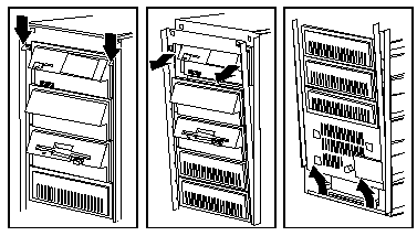 Press a rail guide into each side of the DASD support structure. The left and right guide rails are the same.