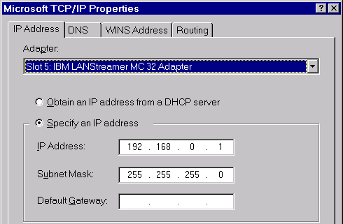 NOTE: NT 4.0, SP2 and below, has a charming quirk on Slot Numbers. M$ did it 0-7, IBM has always done it 1-8. If you come up with Adapter not found, go HERE