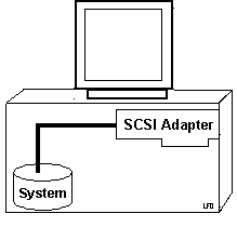 In this example, both systems are attached to a set of SCSI disks in 3510 Enclosures. In both systems, the same SCSI adapter that is attached to the disk set also is attached to the system disk. NOTE that all devices connected to the disk set have SCSI IDs between 0 and 7. NO DUPLICATE IDs on SCSI devices attatched to the disk set allowed! amedico@calug.net noticed a duplicate in the original diagram. He doesn't win anything, but he was right... It seems that only the system disks have termination enabled. On IML systems, this setup REQUIRES the 44/45 SCSI BIOS and the enhanced complex BIOS (T1 and T2 need upgrade EPROM!). Note the SCSI adapter at ID6 and a system disk at ID4. |
