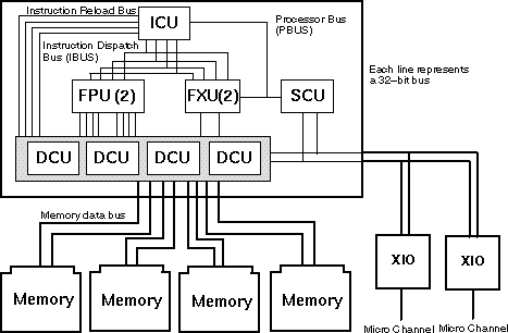 POWER implements one floating-point, one integer, and one branch unit. It can execute four instructions per cycle (five operations).The POWER2 multichip implements dual integer, floating-point, and branch units that can execute six instructions per cycle (eight operations).