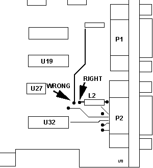 Refer to the diagram to determine if you have an affected card. Ed. It looks like one could unsolder the left wire of L2 from the WRONG position, and resolder it into the RIGHT position.