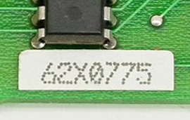 1.  Component side: "62X0775" on white sticker  / Solder side: "IBM 62X0776"