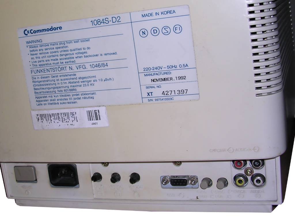 There were 2 versions of this monitor. First one, from 1992, with Commodore marking in front, they have distinguishable brown/gray protruding frame around CRT. My unit from 1994 is post-Commodore but before Escom and is totally white in front. It was marketed as "CGA" but 99% of post-commodore units have NO RGBi support making it unusable with CGA.