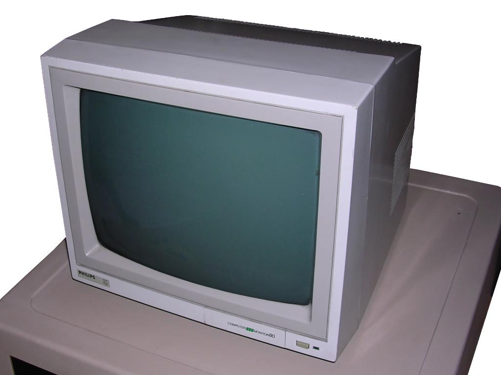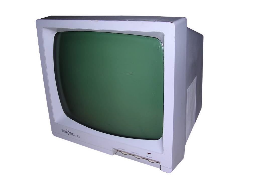 Many 8-bit microcomputers could be used with an ordinary TV as monitor. It was good for gaming, but not for serious long-time work, as the picture was not sharp enough and flickered too much, causing headache after few hours of text editing or programming. Special display units with monochrome (usually green) or color picture tubes were used. Some of them were simple units based on TV sets with green CRTs.