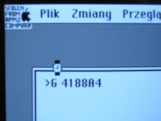 If you type "G 4188A4" there and press Enter, you'll get message "Stolen from Apple Computers". This small bitmap was a trap for companies who wanted to copy Macintosh including its ROM and sell it as their own product. Some companies did it, but they made a new, compatible ROM (for example Executor emulator contained re-written ROM to run Mac programs on PC - thanks to Jorpho for info). Some others just copied a whole ROM changing "Apple" to their name in all strings. Because "find-and-replace" works only with text, not bitmaps, this "Stolen from Apple" survives any changes except deep analysis of ROM... which was done only while writing a new one. This was an easy proof that ROM was copied.