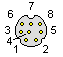 Let's start with cable. Here's the pinout of my cable, checked with continuity tester. I don't know are all these pins used, I checked it and works, more, this cable works well as a loopback cable for diagnosing old Macs with MacTest. In fact, it's printer cable for Personal LaserWriter 320, it works with it well too. The cable has two Male 8-pin mini DIN plugs.