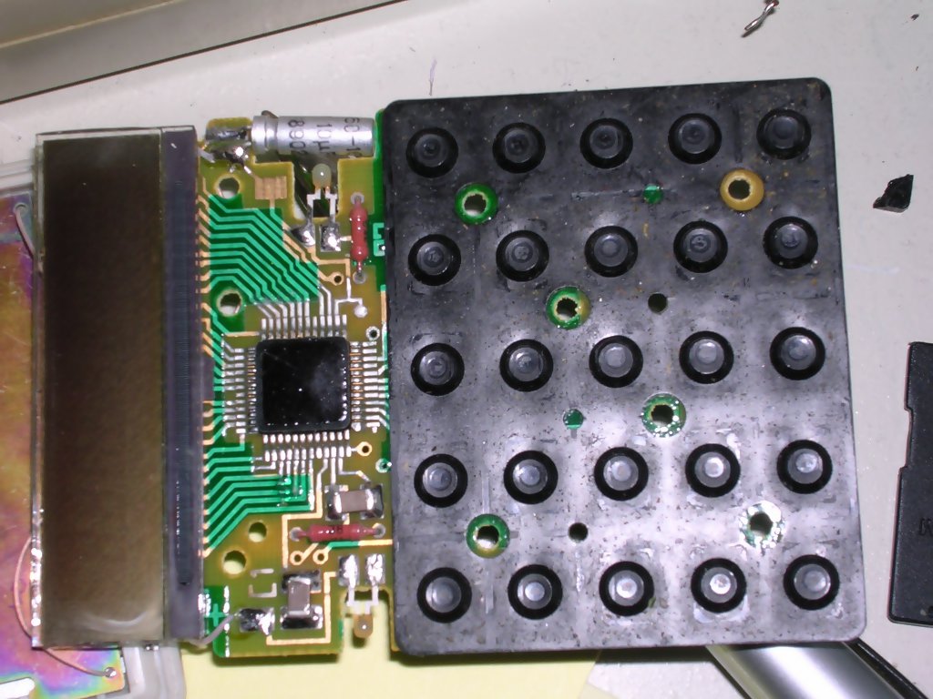 There were a few versions of this calculator with small differences in casing colours, containing different chip sets. IK2P chip required additional chips for storage, not present in IK2-based. There was also a transistor-based converter giving voltages needed for VFD tube.