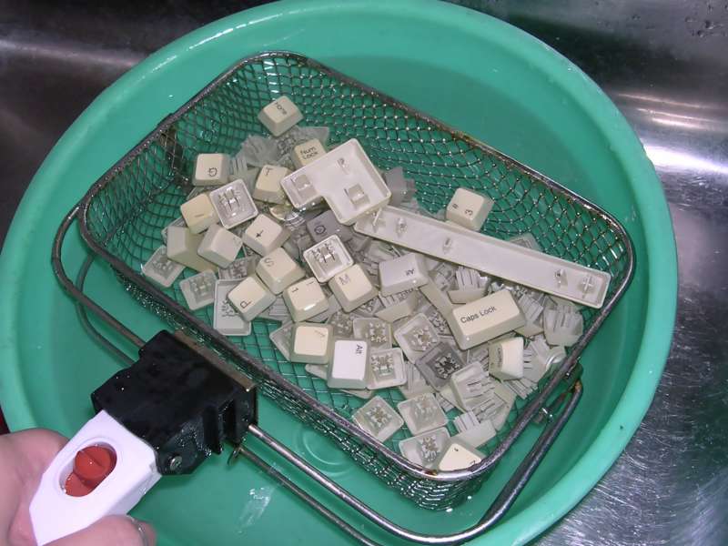 A method for cleaning keyboard's keycaps is similar as with other computer parts, but I just put them to bowl of