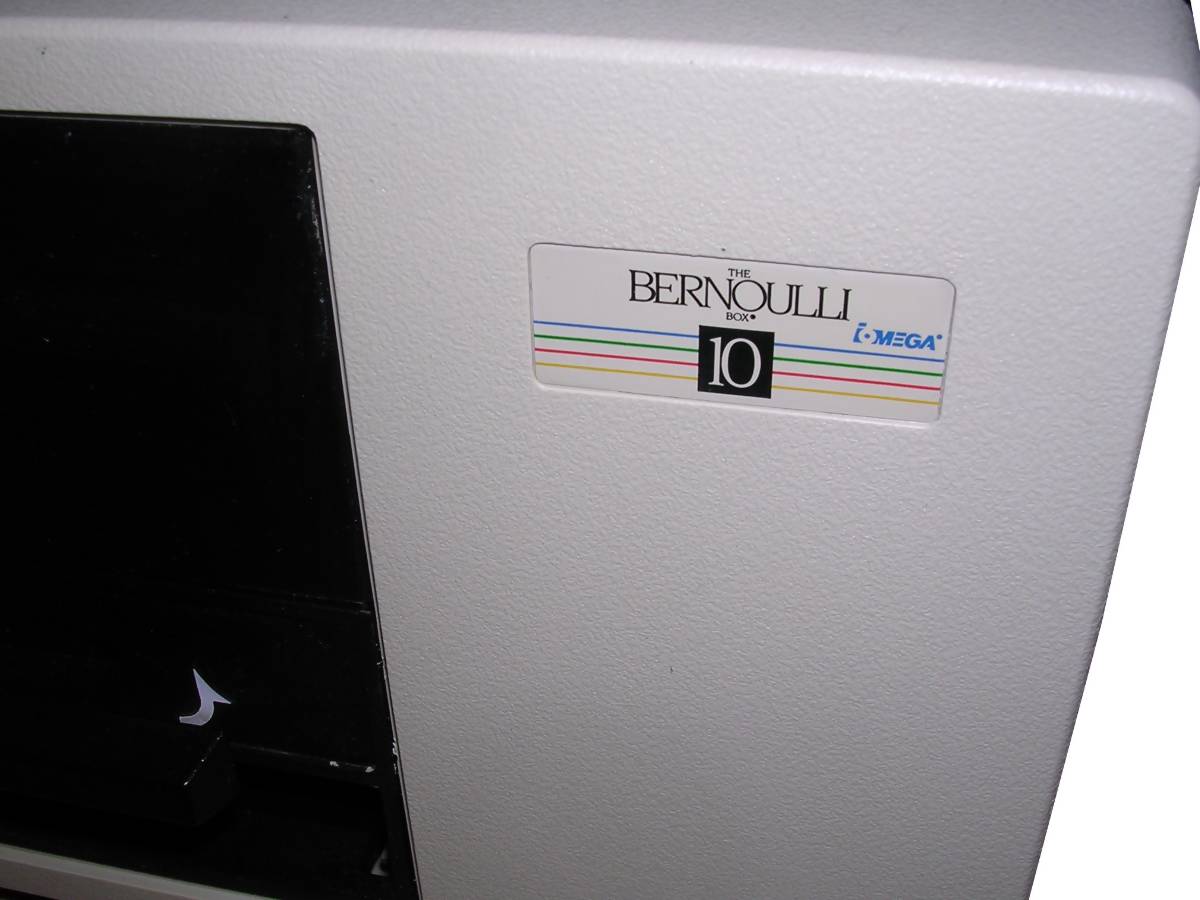 IOMega was a company famous of their Zip and JAZ drives, which allowed to store large amounts of data on a portable media. However, they haven't started with ZIP - the first IOMega product was called Bernoulli Box. Released in 1983, the Bernoulli box was a high-capacity magnetic drive with removable disk cartridges. It was 8-inch and allowed to store 10MB of data on an elastic platter in hardened cartridge. The principle of operation was revolutionary as of its time - instead of heads having constant contact with a disc, the Bernoulli disks used a cushion of air to maintain head right above the surface. This phenomenon, working on Bernoulli's principle, gave the name to the drive. The heads were loadable, and while hard drives used a contact heads with servo motors, Bernoulli drive used flying heads with voice coil mechanism, giving better tracking precision by using feedback to position the head over track.