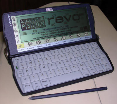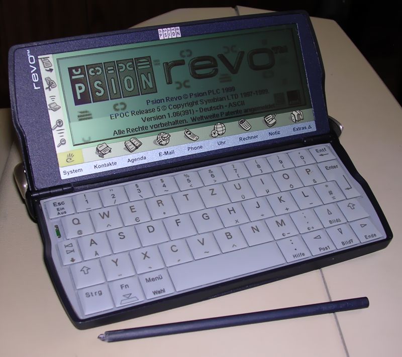 Psion was known manufacturer of handheld devices, PDAs, data collectors and palmtops running EPOC operating system - EPOC evolved later to Symbian and was used in early smartphones. After a big step forward when introducing multi-program Psion 5MX, they decided to make Psion devices smaller. Psion Revo, sold sometimes as Revo 2000 or Diamond Mako (USA/Canada), was a Psion 5MX with smaller screen and built-in batteries. Keyboard was quite comfortable, touch screen was used with stylus. The only problems was lack of configurability of software (as in e.g. HP 200LX in which you can set any character encoding possible or even make your own) and the result of miniaturization - to transfer data, docking station was needed.