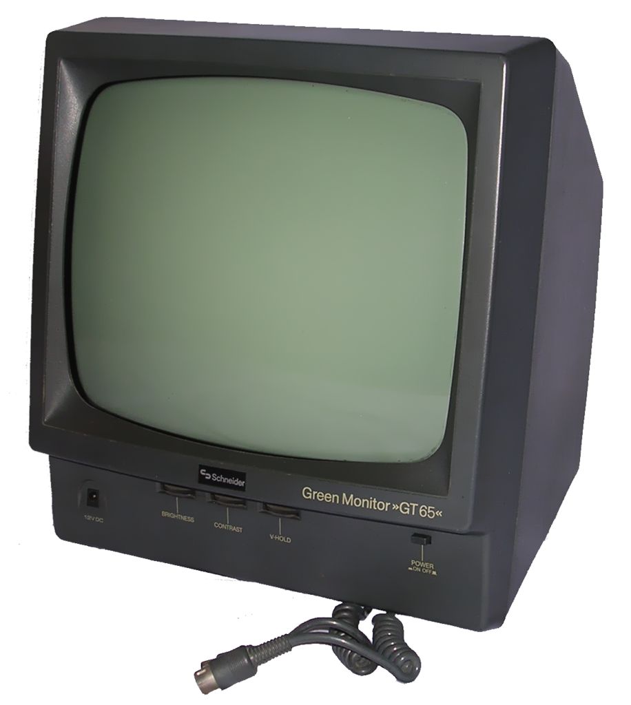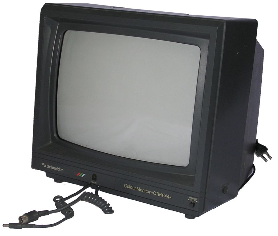Small monitor used with Amstrad CPC computers. As Amstrad/Schneoder CPC computers have no conventional video output, users were forced to use these monitors or expensive RF modulator units. More, CPCs had no power supply units outside of monitor, so dedicated RF modulators had it built-in too.