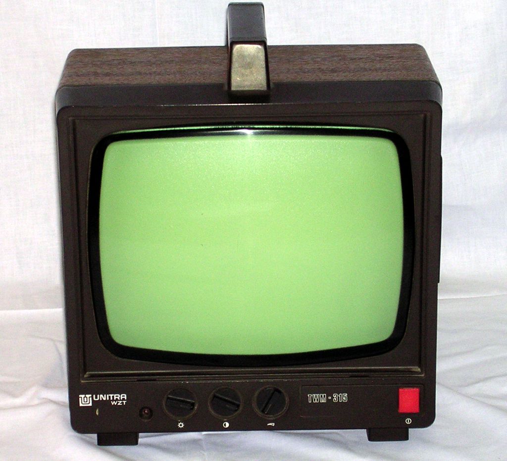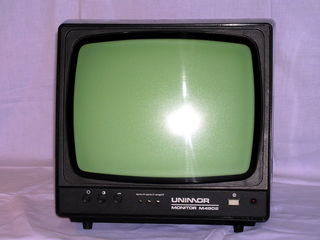Many 8-bit microcomputers could be used with an ordinary TV as monitor. It was good for gaming, but not for serious long-time work, as the picture was not sharp enough and flickered too much, causing headache after few hours of text editing or programming. Special display units with monochrome (usually green) or color picture tubes were used. Some of them were simple units based on TV sets with green CRTs.
