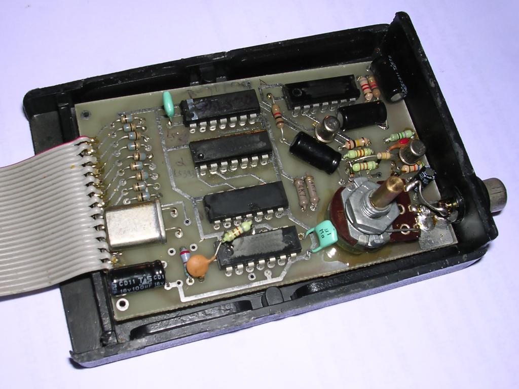 It was made in Poland in early 1990s. It is built using only wires, components and hot melting glue.