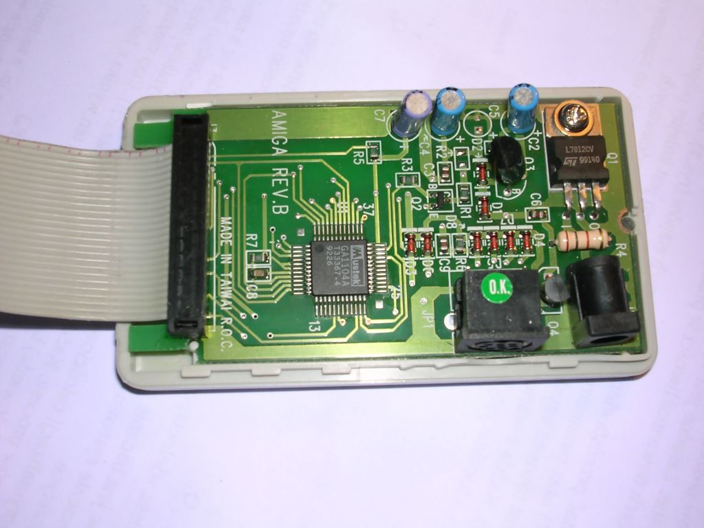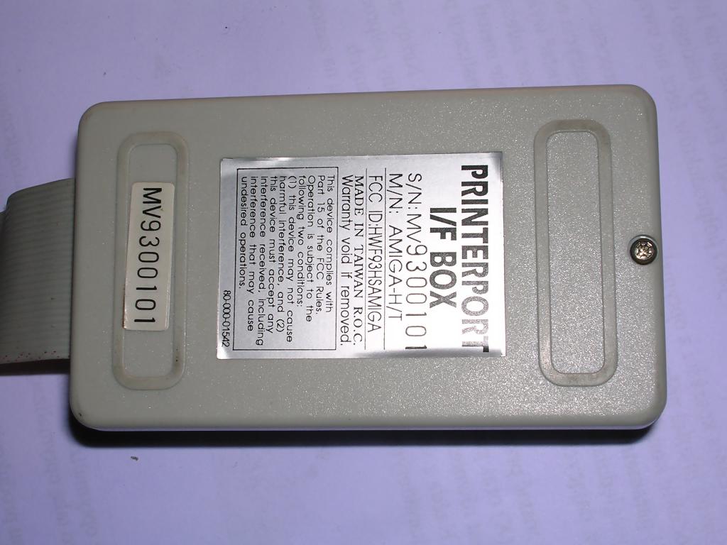 This small device allows orecord a short sound clips with Amiga computer. It was manufactured by many small companies in Poland, and this one is probaby from one of them. I don't know which software works with it, so I'm not even trying to run it. It has a parallel output, but made from serial data coming from some kind of ADC chips.