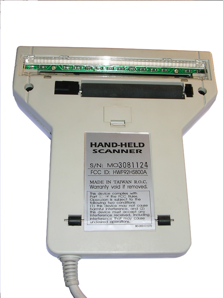 The scanner is a typical hand scanner, it allows to scan up to 400dpi and in monochrome, probably some kind of greyscale too. It's conected with the ordinary GSIF connector, but the GSIF interface is for Amiga parallel port. I don't have any software for it and Datel's or Touch-up programs seem not to work with this scanner.