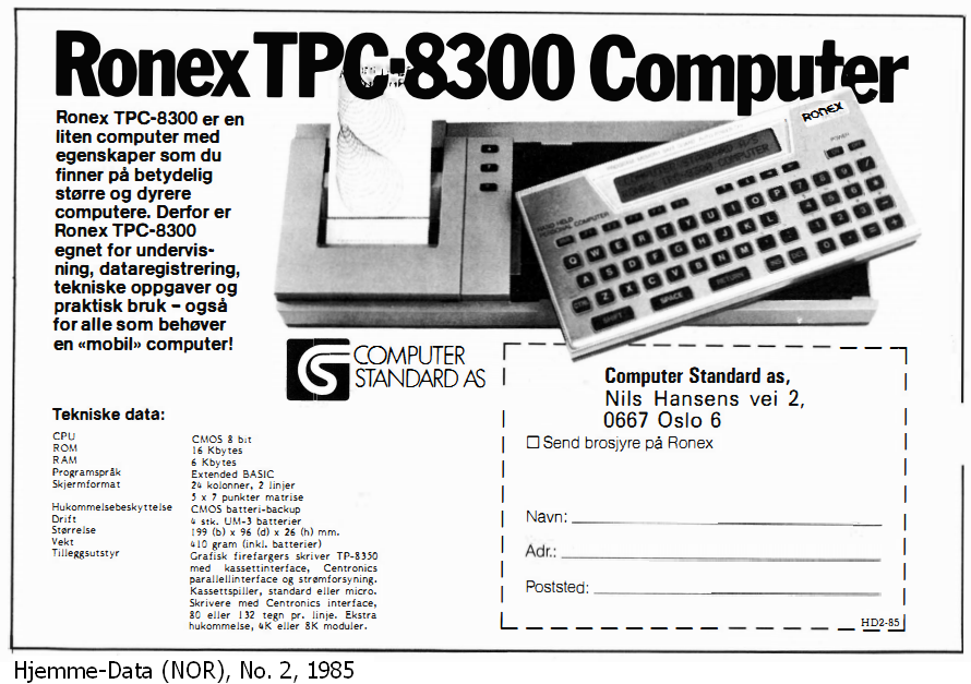 additional interfaces. The computer is built around NEC uPD78C06 8-bit