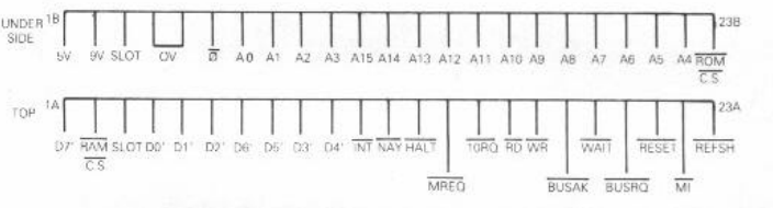 The expansion connector pinout (as in Steven Vickers: ZX81 BASIC Programming, Sinclair 1980):