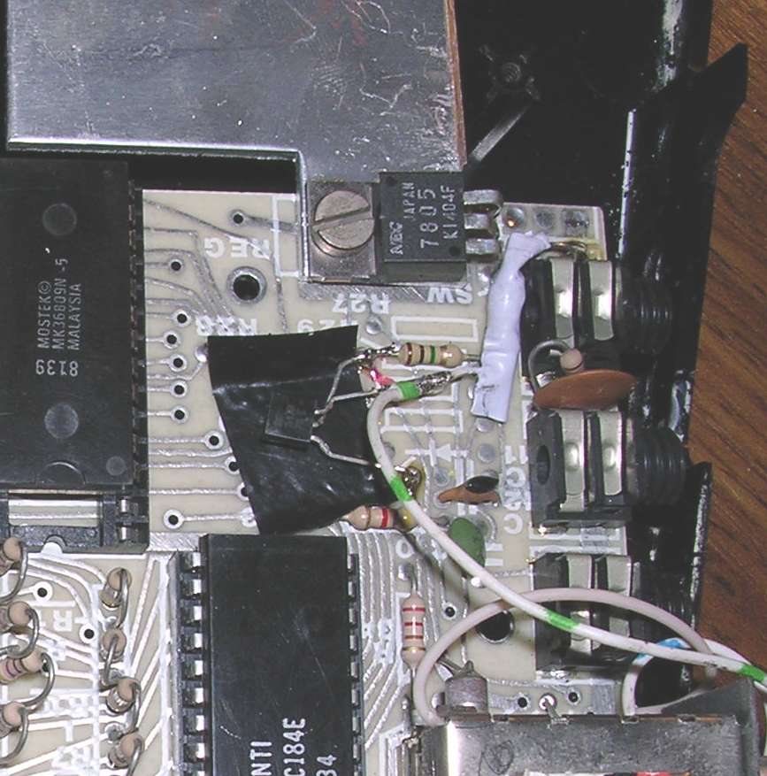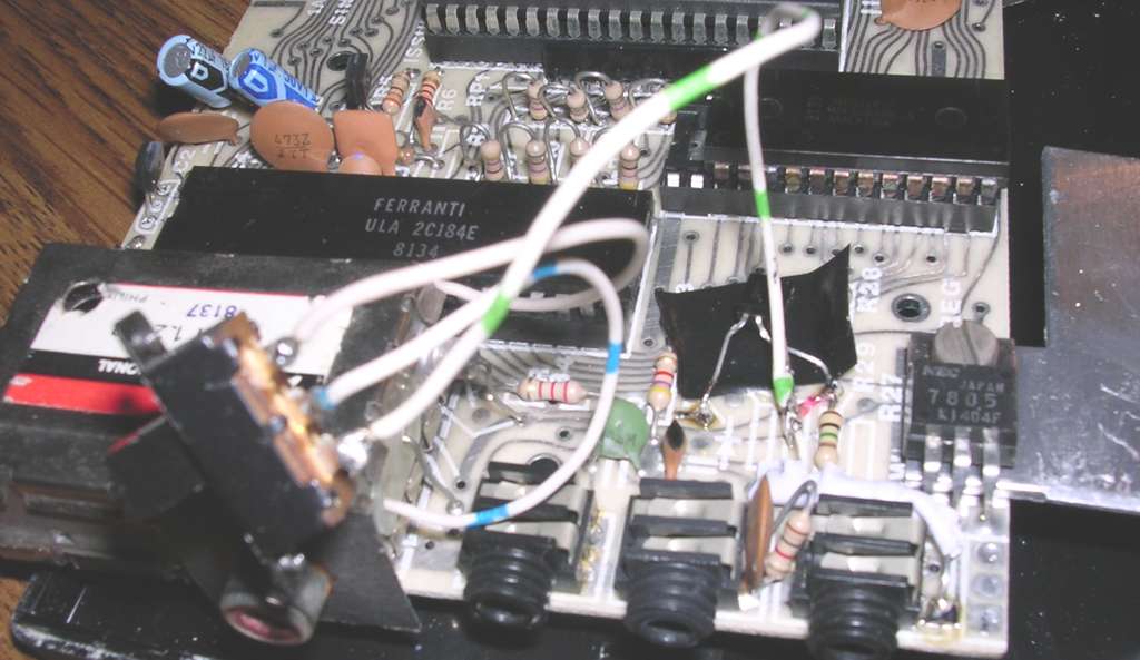 There's so much free space inside that it's easy to install a transistor and resistor inside. Be only careful about short circuits, as you can damage your ZX when something will touch the mainboard - it has no soldermask or any insulation on the top layer! USe lots of insulation tape and thermal shrinking tubes.