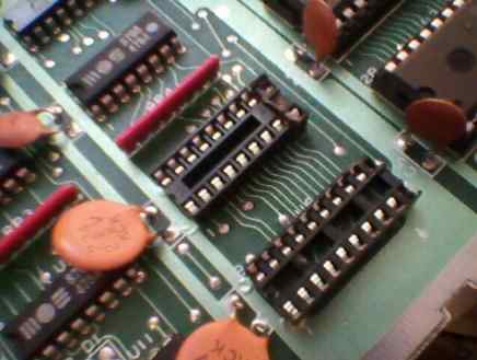 Now put two 464 (4464, 41464, 2464 etc.) into these sockets. Check everything one more time. Any short circuits? Finally power up the computer. You should get a normal startup message with 12277 bytes free.