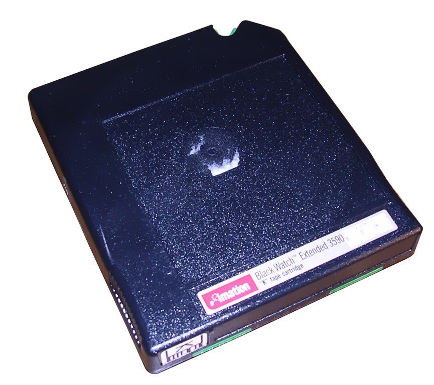This linear, half-inch IBM 3590-compatible tape cartridge was popular in 1990s as a backup storage in some server rooms. It was quite fast and durable, most media were readable in another manufacturer's streamer. 128, 256 or 384-track formats could store 10, 20, 30, 40 or 60GB of data, as there were two types of tape: normal and extended length (called Extended High-Performance).