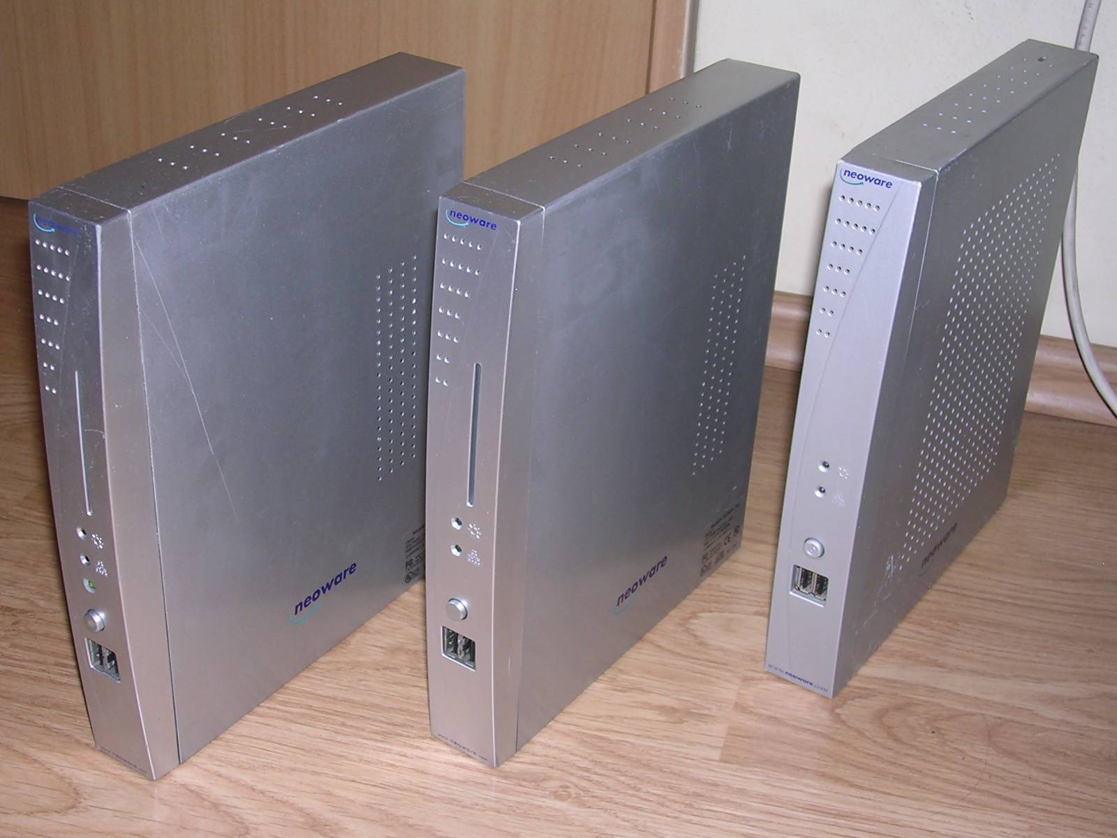 In mid-1990s business environment started to look for alternatives cheaper than a PC in every desk. IT managers realized that intranet-based or remote computing solutions are used more and more in corporate applications and PC is usually much more than enough. Neoware corporation started to fulfill their needs - they manufactured a cheap, small PCs with terminal software installed on it, called NeoStation. Later it was renamed to just number like, in a "next generation" released in early 2000s, C50 or "Capio". It was not possible to upgrade it too much (well, in this one only RAM in PC100 or PC133 SODIMM modules), they were not as fast as desktop PCs but they were totally sufficient for terminal applications. This is an idea of a thin client, a terminal PC. Capio was the first of a "second generation" thin clients, made around special PC-compatible chips for embedded systems with low power consumption. A new Cyrix System-on-chip processor called Kahlua, later renamed to Geode or GX1, running at 300MHz gave performance of Pentium MMX processor running at around 200MHz.