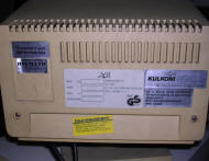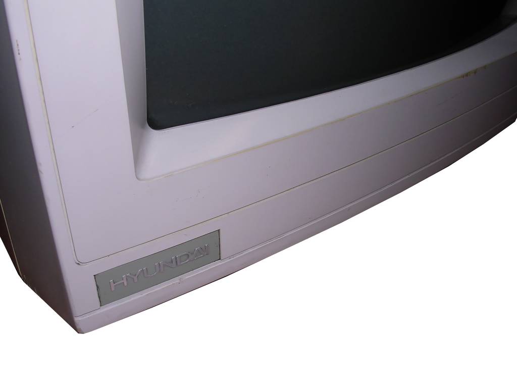 A colour CGA monitor for colour boards, one of the last. This time branded "Hyundai", as many of these lines, with 14-inch nice CRT. Although Korean or Taiwanese, this unit is based on Samsung CRT and Japanese circuits. One more thing: This unit is quite heavy as for early 1990s CRT.