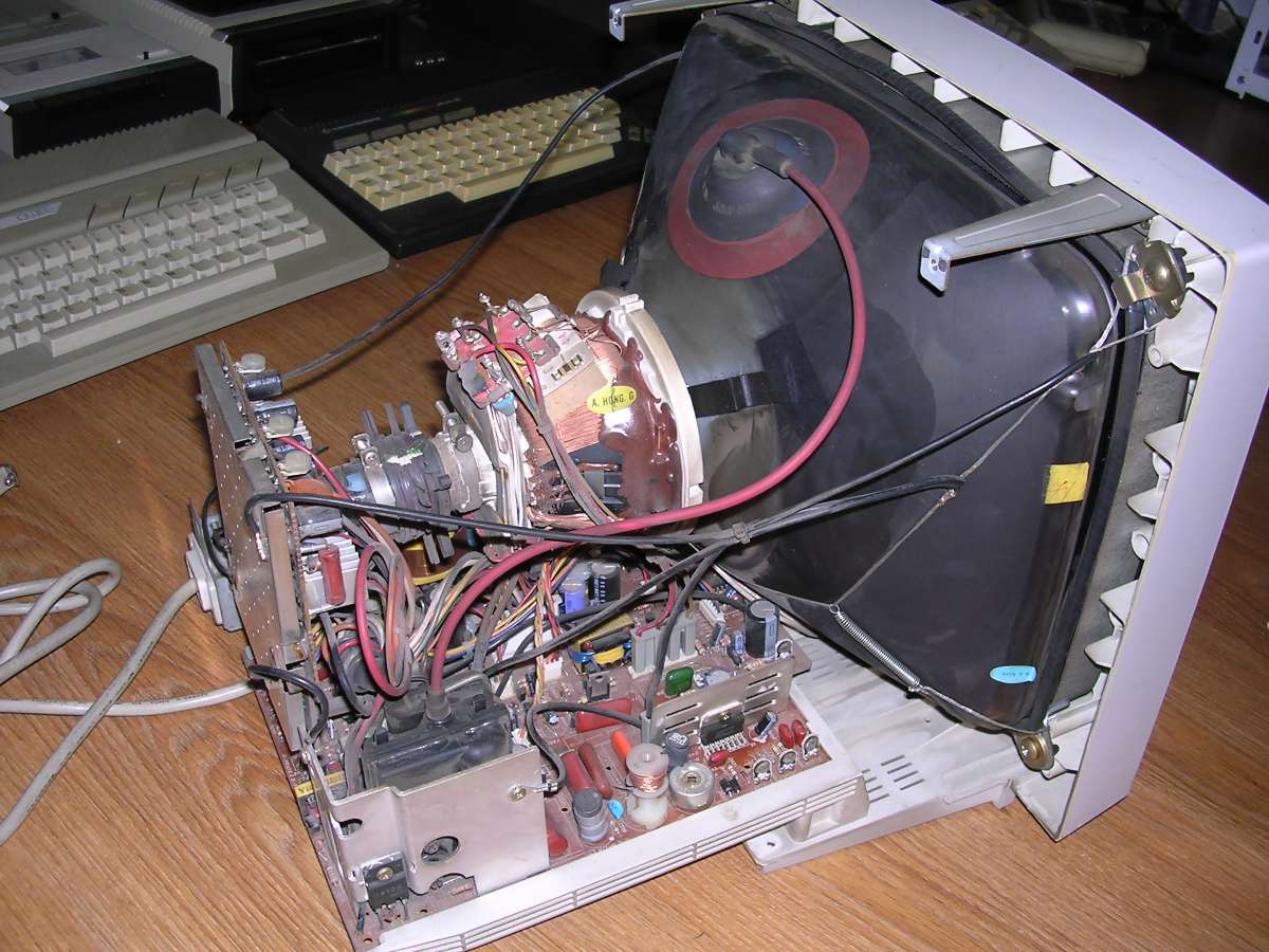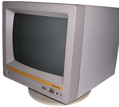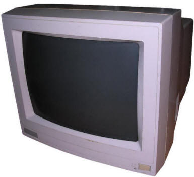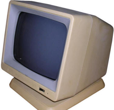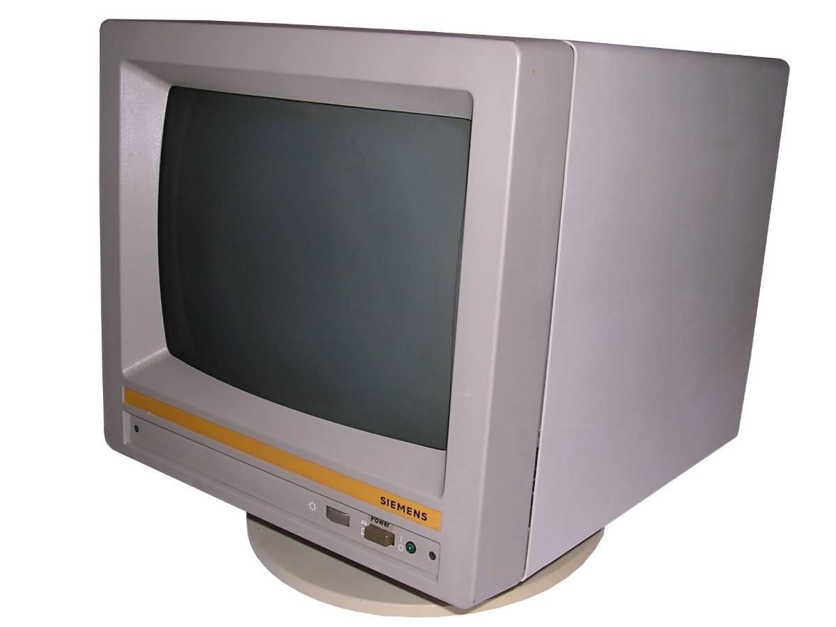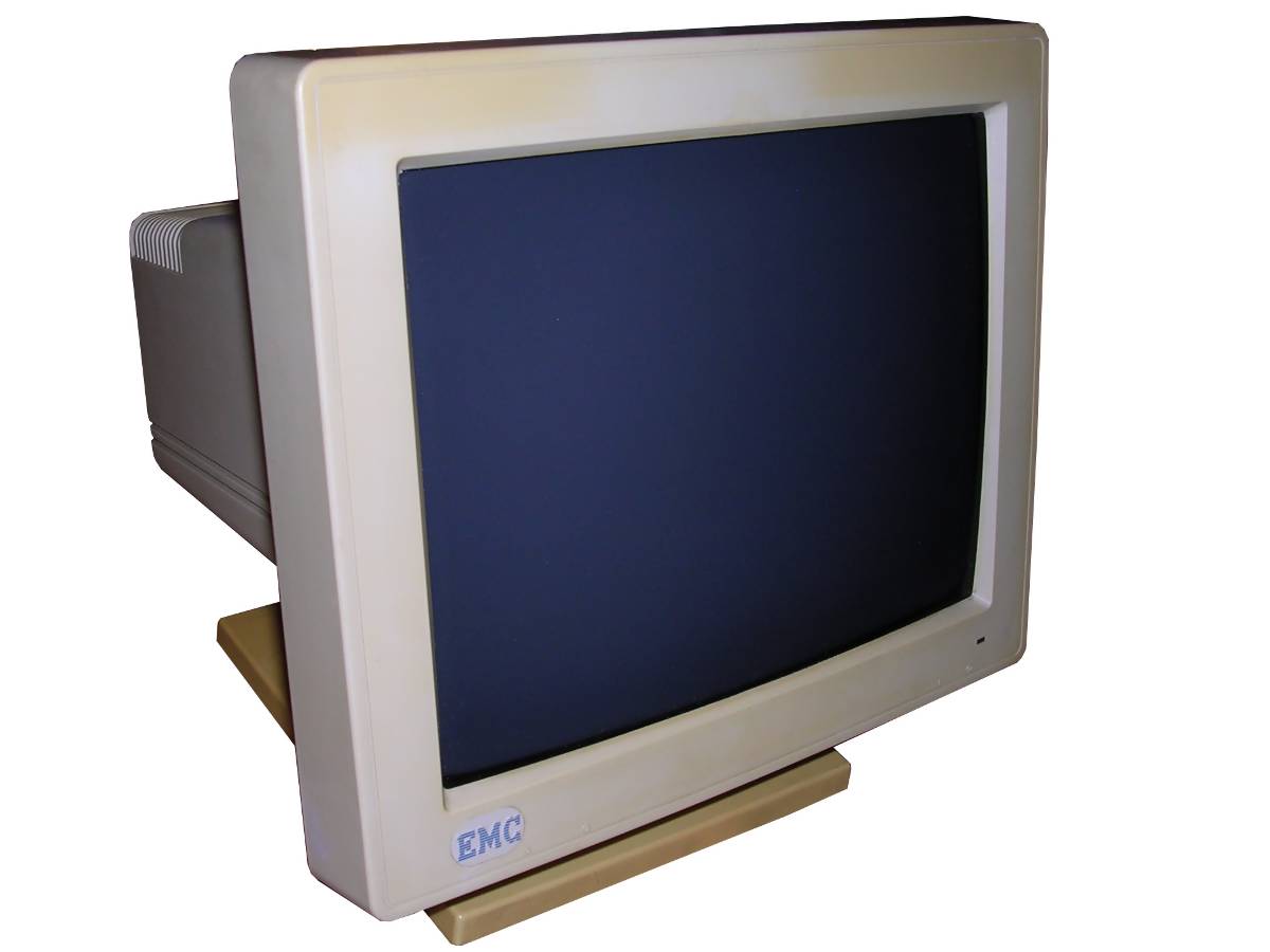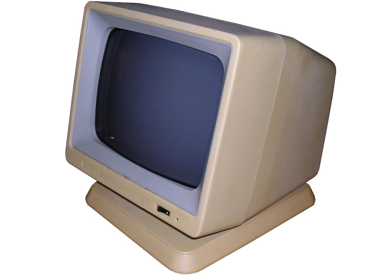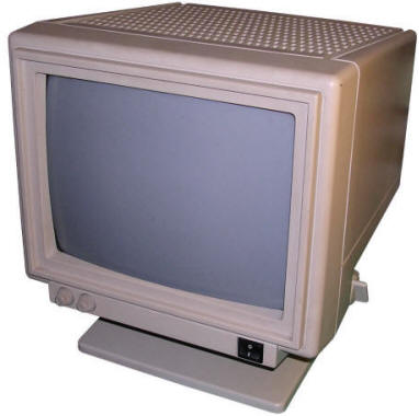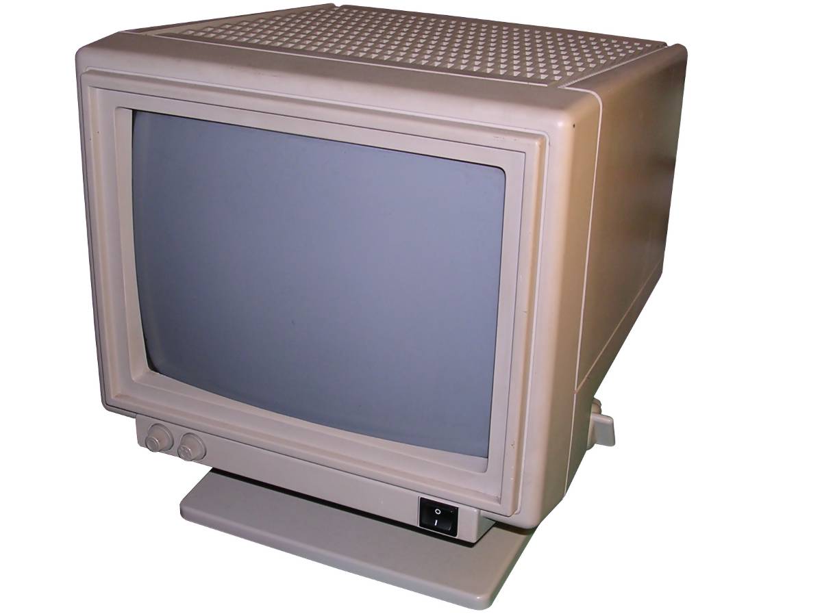 PCs, in their initial form, were designed as office computers for editing text, using databases or calculating data. Such computer doesn't need a sophisticated display - monochrome screen showing letters encoded in a permanent font memory was totally sufficient. The first display card for PC called MDA - Monochrome Display Adapter, was showing text on a green-phosphor small CRT monitor connected by a cable (with separate signal and sync). PC clones used similar monochrome displays. With CGA (Colour Graphics Adapter) boards getting popularity, colour displays were still expensive. More, to display colours the circuit was far different than in colour TV - color information was sent as 4-bit TTL, marking R, G, and B colours as well as bigger or smaller "intensity". This made CGA displays work only with 16 colours. Popularization of higher-resolution raster-based graphics (like Hercules boards) made monochrome monitor manufacturers improve their products. Green CRTs became amber (what was a bit better readable in low-contrast conditions) and later white, imitating inverse-paper display. Hercules made an important step in mid-1980s, it was popular and offered a monochrome, high-resolution (720x350) graphics forcing monitor manufacturers to go up with quality. So the Big Blue shipped displays only for their computer sets, and other manufacturers made their own. Sometimes, when extended capabilities were needed, brecahing the standard. Of course there were displays made especially for some specific PC clones, which had capabilities outstanding MDA or CGA, or just had to be compatible only with these devices. A typical example can be monitor for Siemens PC-D or Robotron EC1834.