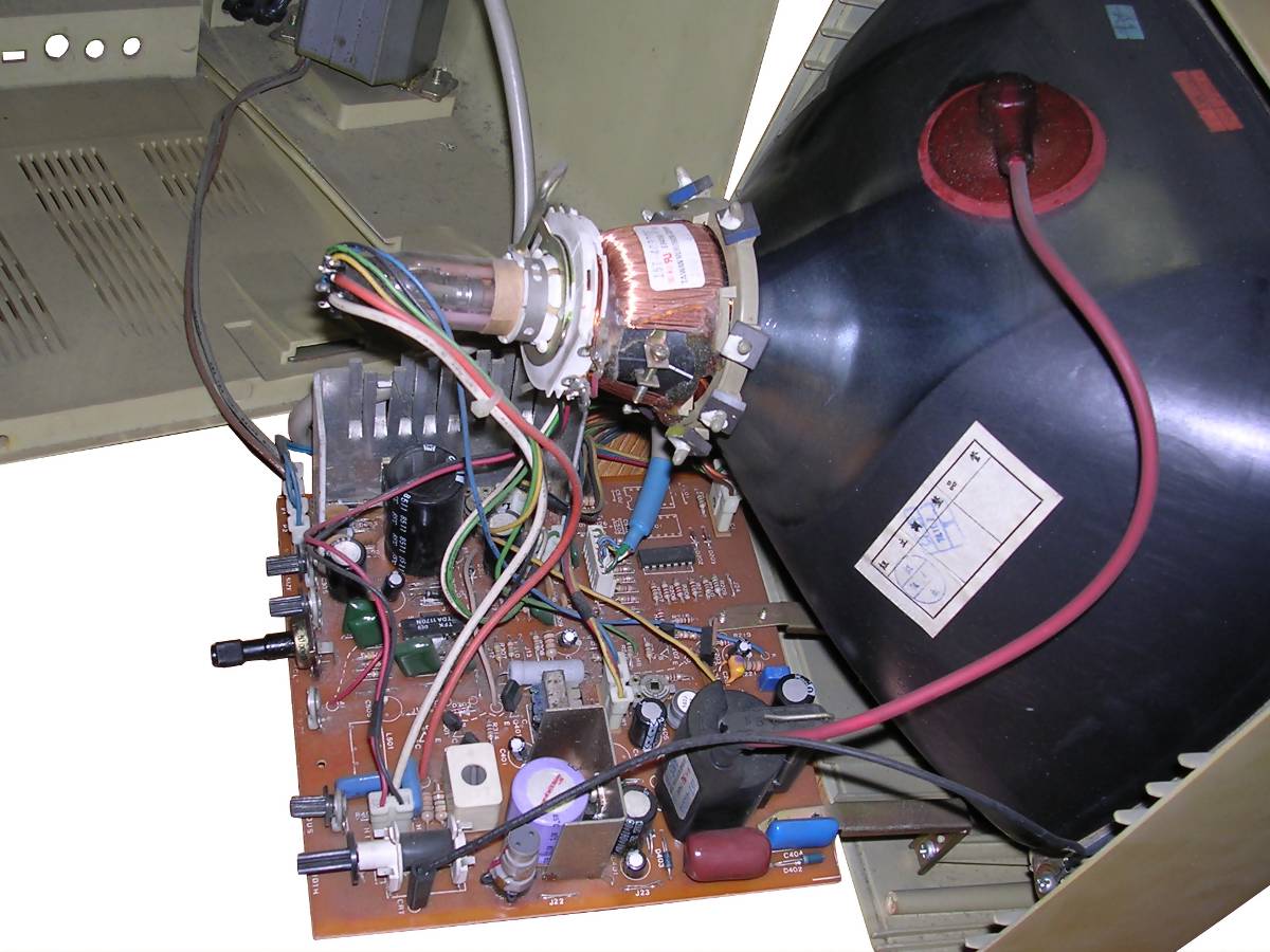What's interesting this device is extremely tolerant to input signals - can display many picture types without problems, I connected it into different MDA, CGA, Hercules and EGA variants (by converter) and it always shown something. Usually the first failure is the input filter capacitor, big red one.