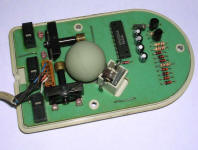 PCB. Ball is kept in one position by shafts and one wheel, on