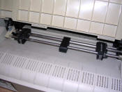 | In early 1990s dot matrix printers were used for nearly everything in computers. Having a laser printer was an expensive luxury and ink jet printers were not mature enough. Epson, manufacturer of printers, scanners and similar solutions (these times they even made computers), released FX870 and 1170 printers around 1992. 870 model had an A4 paper support while 1170 could use wider forms. Although a bit slow, this 9-pin printer does what is needed - prints in forms, and it can be done many ways. There are 2 continuous paper feeder positions - front and rear, and it's possible to insert separate sheets too. Additionally paper can be fed from the bottom. | ||