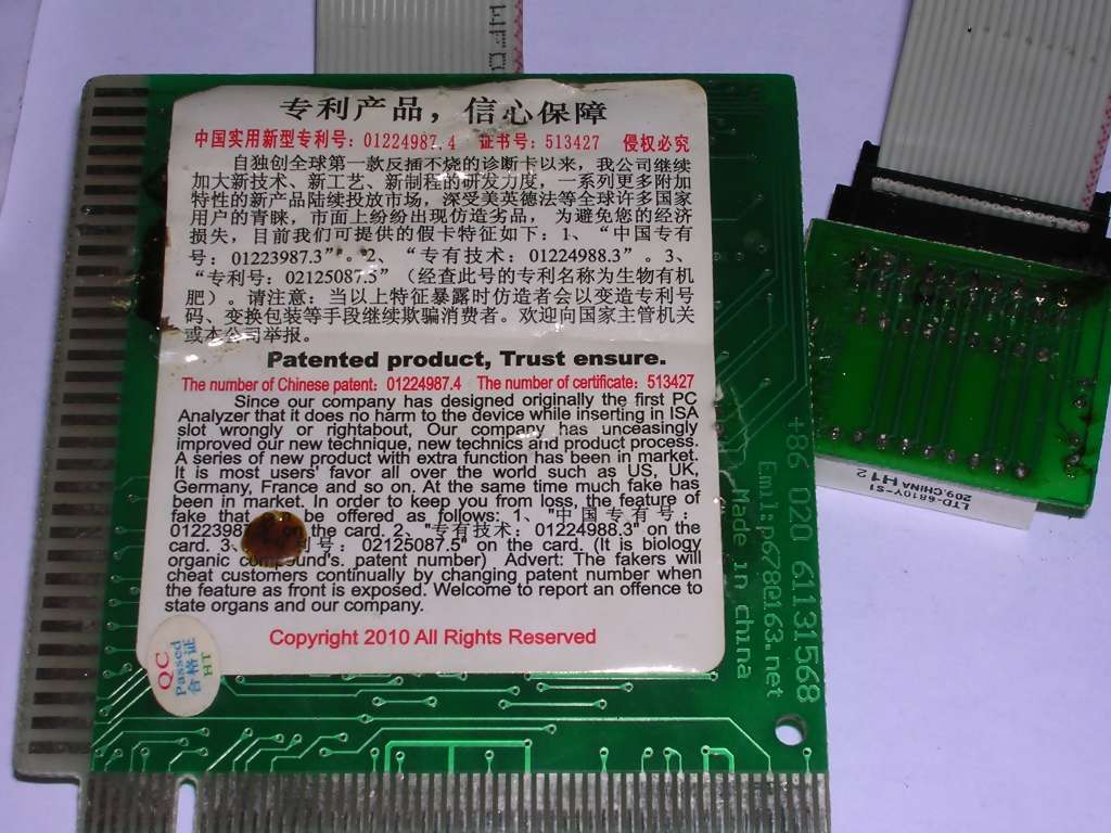 solder side with solder flux. These boards are made to show, on 7-segment display, a BIOS POST code. Before the failing system beeps for help, it puts codes for successive POST tests on a system bus. The board is made to capture and display these signals as well as states of some lines on bus. Another display can be connected on a ribbon cable to improve visibility. The problem with this board is quality. It is awful. |