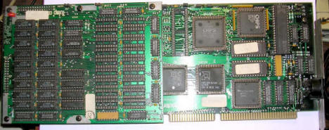 This is a simple thing, a board offers digital I/O into the system bus. This I/O was used probably by some early uninterruptible power supply (UPS) unit to notify the computer that there was a power failure and battery level is low. The software probably then ordered computer to save data and power off. It has 4 DIP switches for configuration, a 6-pin mini-DIN connector probably for UPS and a 3-wire 3.5mm jack.