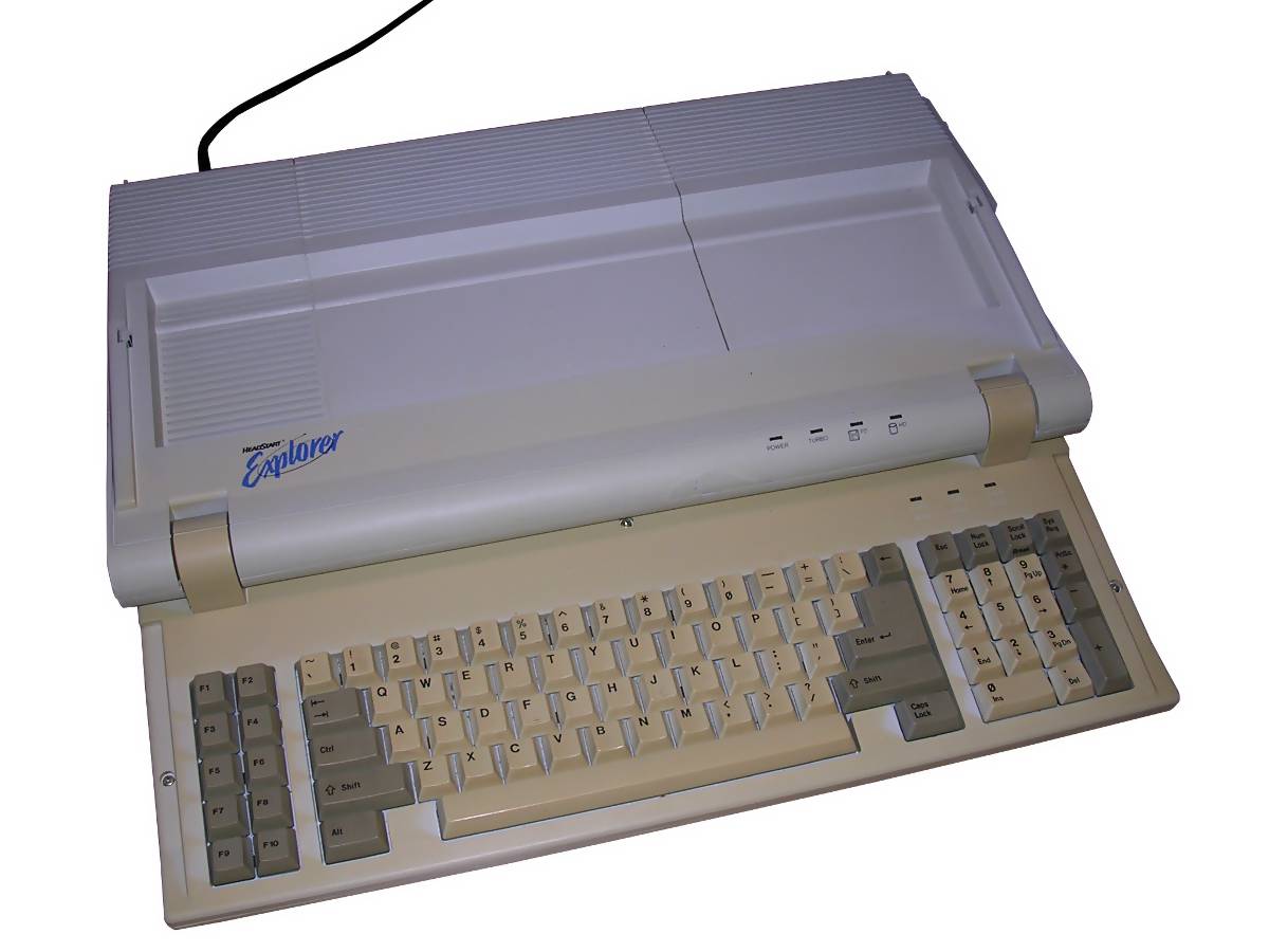 In 1980s most computer companies started to sell small PC-compatible systems as "starting points" for new PC users and as PC-compatible home computers. In 1989, Vendex company from Nederlands who already made electronic products and DIY kits released a HeadStart line computer called HeadStart Explorer. The trademark "HeadStart Explorer" has been registered in 1989 and the computer has been released shortly after. It was probably designed by "CADAC" as this name is present on mainboard's copper while "Explorer" is in silkscreen. The computer was designed as a small home computer with limited expandability by the cost of making the system smaller and all-in-one. The central processing unit contains a keyboard on hinges, 3.5" floppy disk drive and in some versions a 40MB hard disk named "AutoMagic". Display chip can show graphics in CGA or Hercules-compatible modes. Full versions included a proprietary mouse, monitor and a special monitor stand to easily put the computer inside forming a comfortable workstation. But the most characteristic part was the operating environment - 384kB of ROM contained MS-DOS version 3.31 and Explorer GUI which allows to work in PIM programs, database and text editor using mouse. The GUI is shown using CGA mode and allows to launch DOS programs too.