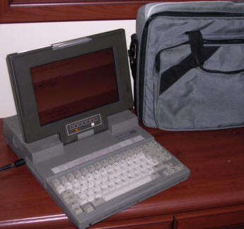 A 286 portable similar to Toshiba 3200, but with backlit LCD instead of plasma and with battery pack, allowing it to work without power source for 1-1,5 hours (charging time: 3 hours when computer is off, 10 hours when on). It has ISA slots, but battery pack forced power supply to be external. It has 3.5" 1.44MB floppy disk drive and 40MB Conner hard disk. Graphics is also cheaper - It's CGA with Hercules compatibility, but LCD is not Hercules-compatible so only part of picture is displayed (Alt-left and right arrows scroll it).