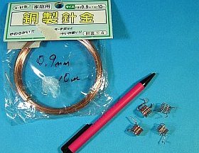 作り方は、シャ−プペンシルに巻き付けて形を作り、その後で爪楊枝などを使って線間隔を均等に広げます。多少広げ過ぎ位にした後、押し潰すと比較的間隔の揃ったコイルになります。(尚、この105円銅線は裸なので半田付けは容易ですが、線間ショートが嫌ですね)